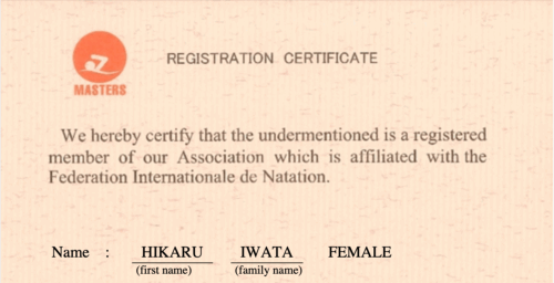 氏名、所属、住所/電話番号、緊急連絡先、出場種目/エントリータイムなど - 日本のチームから出場の場合は、チーム登録証明を添付 *ここだけ日本と異なる
